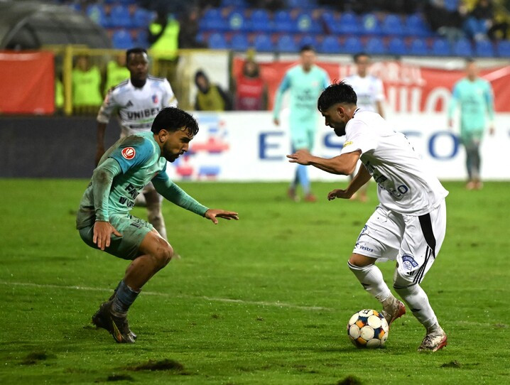 Descriere: Arpad Sebastian Mailat si Mark Tutu in meciul de fotbal dintre FC Botosani si UTA Arad, contand pentru Superliga Superbet, desfasurat pe Stadionul Municipal din Botosani, luni 6 octombrie 2025. © FOTO:Tudy/SPORT PICTURES
