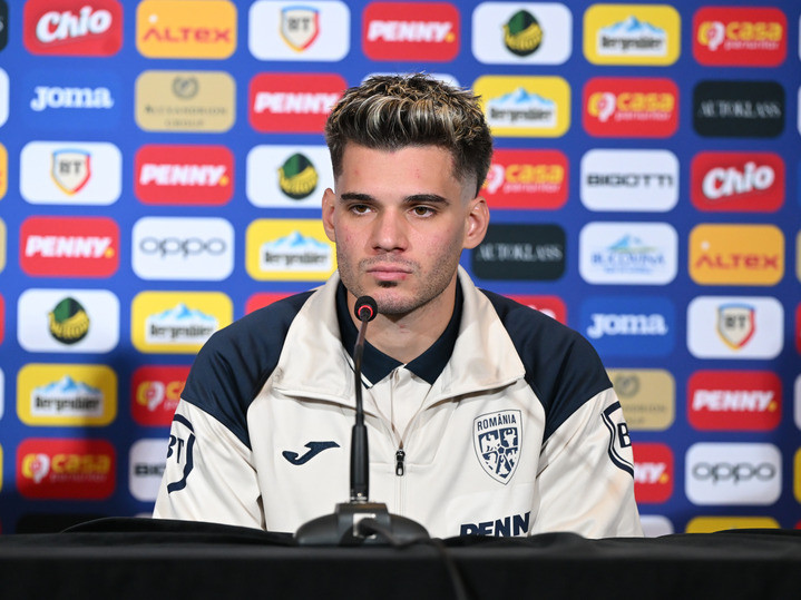 Descriere: Ianis Hagi la conferinta de presa de dinaintea meciului amical impotriva Moldovei, desfasurata la Clubul Bokaa din Buftea, miercuri 8 octombrie 2025. © FOTO:Razvan Pasarica/SPORT PICTURES