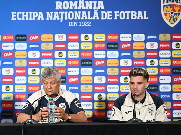 Descriere: Ianis Hagi si Mircea Lucescu la conferinta de presa de dinaintea meciului amical impotriva Moldovei, desfasurata la Clubul Bokaa din Buftea, miercuri 8 octombrie 2025. © FOTO:Razvan Pasarica/SPORT PICTURES