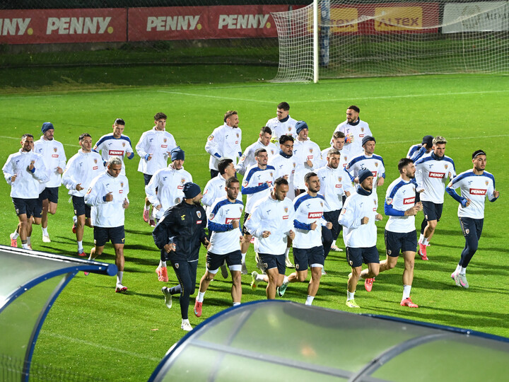 Descriere: Fotbalistii romani la antrenamentul oficial de dinaintea meciului amical impotriva Moldovei, desfasurat la Centrul National de Fotbal de la Mogosoaia, miercuri 8 octombrie 2025. © FOTO:Razvan Pasarica/SPORT PICTURES