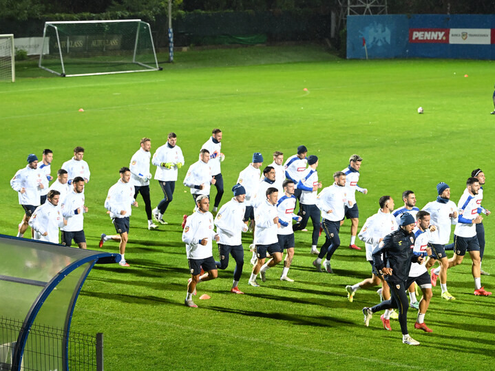 Descriere: Fotbalistii romani la antrenamentul oficial de dinaintea meciului amical impotriva Moldovei, desfasurat la Centrul National de Fotbal de la Mogosoaia, miercuri 8 octombrie 2025. © FOTO:Razvan Pasarica/SPORT PICTURES