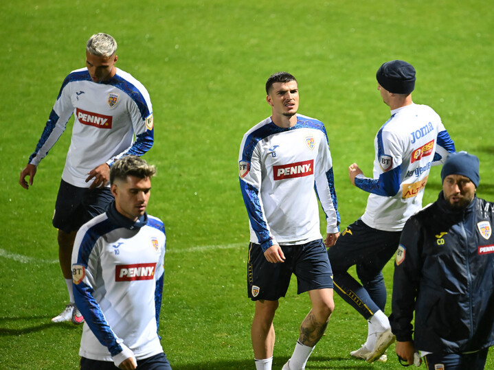 Descriere: Fotbalistii romani printre care Valentin Mihaila la antrenamentul oficial de dinaintea meciului amical impotriva Moldovei, desfasurat la Centrul National de Fotbal de la Mogosoaia, miercuri 8 octombrie 2025. © FOTO:Razvan Pasarica/SPORT PICTURES