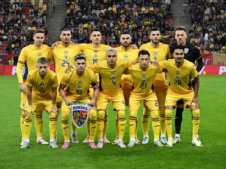 Descriere: Fotbalistii romani la o fotografie de grup realizata inaintea meciului amical de fotbal dintre Romania si Moldova, desfasurat pe Arena Nationala din Bucuresti, joi 9 octombrie 2025. © FOTO:Razvan Pasarica/SPORT PICTURES