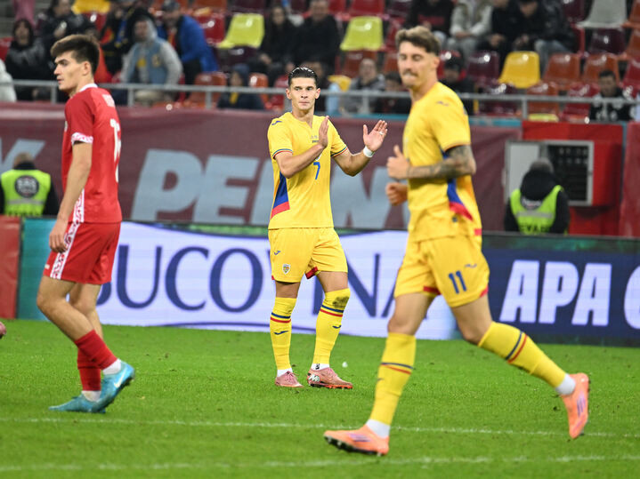 Descriere: Alexandru Dobre aplauda un coleg in meciul amical de fotbal dintre Romania si Moldova, desfasurat pe Arena Nationala din Bucuresti, joi 9 octombrie 2025. © FOTO:Razvan Pasarica/SPORT PICTURES