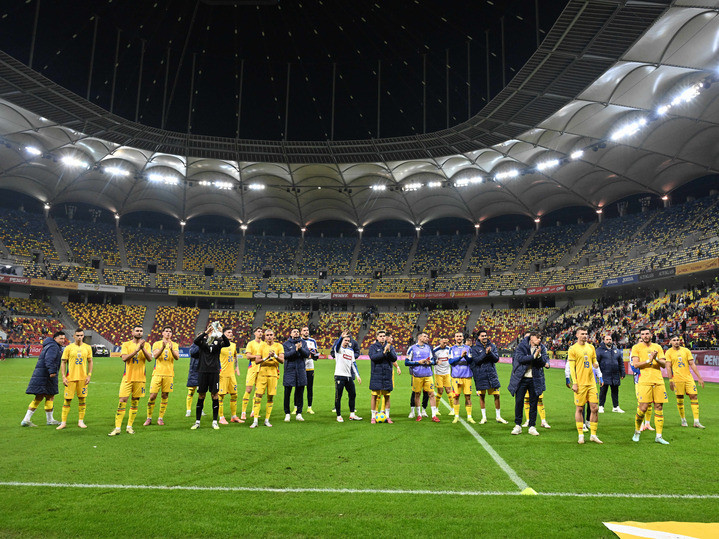 Descriere: Fotbalistii romani saluta galeria dupa meciul amical de fotbal dintre Romania si Moldova, desfasurat pe Arena Nationala din Bucuresti, joi 9 octombrie 2025. © FOTO:Razvan Pasarica/SPORT PICTURES