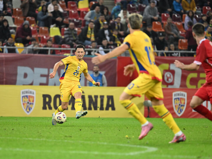 Descriere: David Miculescu, Artur Craciun si Alexandru Boiciuc in meciul amical de fotbal dintre Romania si Moldova, desfasurat pe Arena Nationala din Bucuresti, joi 9 octombrie 2025. © FOTO:Razvan Pasarica/SPORT PICTURES