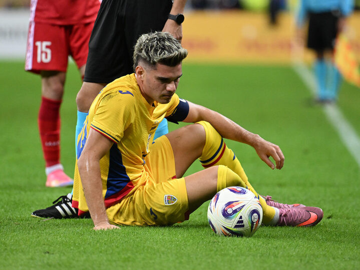 Descriere: Ianis Hagi la pamant in meciul amical de fotbal dintre Romania si Moldova, desfasurat pe Arena Nationala din Bucuresti, joi 9 octombrie 2025. © FOTO:Razvan Pasarica/SPORT PICTURES
