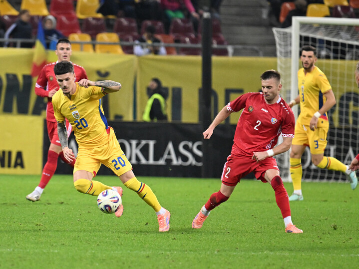 Descriere: Dennis Man si Oleg Reabciuk in meciul amical de fotbal dintre Romania si Moldova, desfasurat pe Arena Nationala din Bucuresti, joi 9 octombrie 2025. © FOTO:Razvan Pasarica/SPORT PICTURES