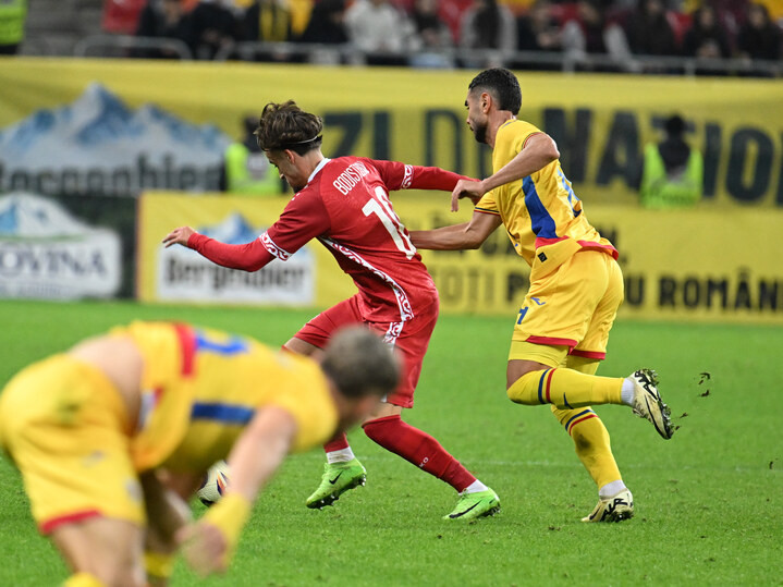 Descriere: Ștefan Bodișteanu si Vladimir Screciu in meciul amical de fotbal dintre Romania si Moldova, desfasurat pe Arena Nationala din Bucuresti, joi 9 octombrie 2025. © FOTO:Razvan Pasarica/SPORT PICTURES