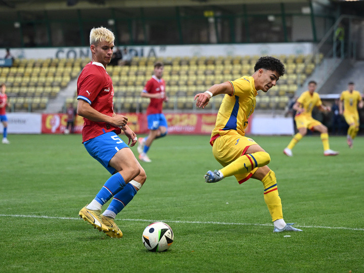 Descriere: David Irimia si Matej Zachoval in meciul de fotbal dintre Romania U20 si Cehia U20, contand pentru Elite League U20, desfasurat pe Stadionul comunal Concordia din Chiajna, vineri 10 octombrie 2025. © FOTO:Razvan Pasarica/SPORT PICTURES