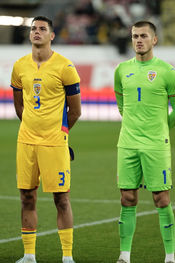 Descriere: Matteo Dutu si Stefan Lefter la startul meciului amical de fotbal dintre Romania U21 si Serbia U21, desfasurat pe Stadionul Francisc Neuman din Arad, vineri 10 octombrie 2025. © FOTO:Alexandra Fechete/SPORT PICTURES