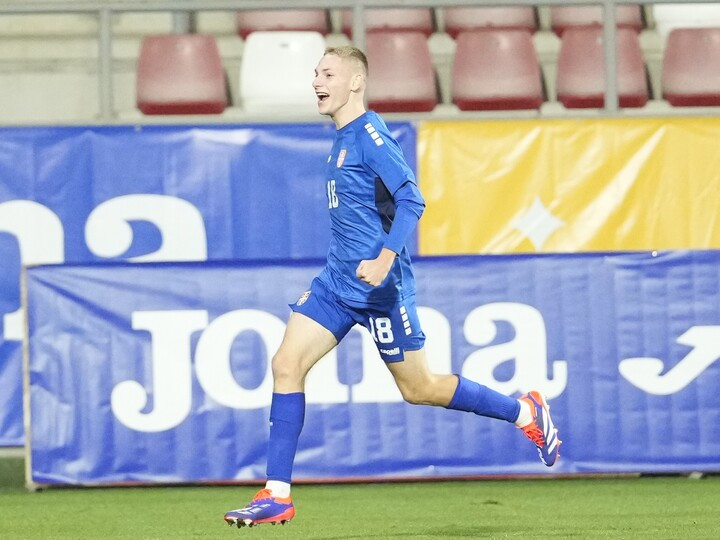 Descriere: Aleksa Kuljanin se bucura dupa un gol marcat in meciul amical de fotbal dintre Romania U21 si Serbia U21, desfasurat pe Stadionul Francisc Neuman din Arad, vineri 10 octombrie 2025. © FOTO:Alexandra Fechete/SPORT PICTURES