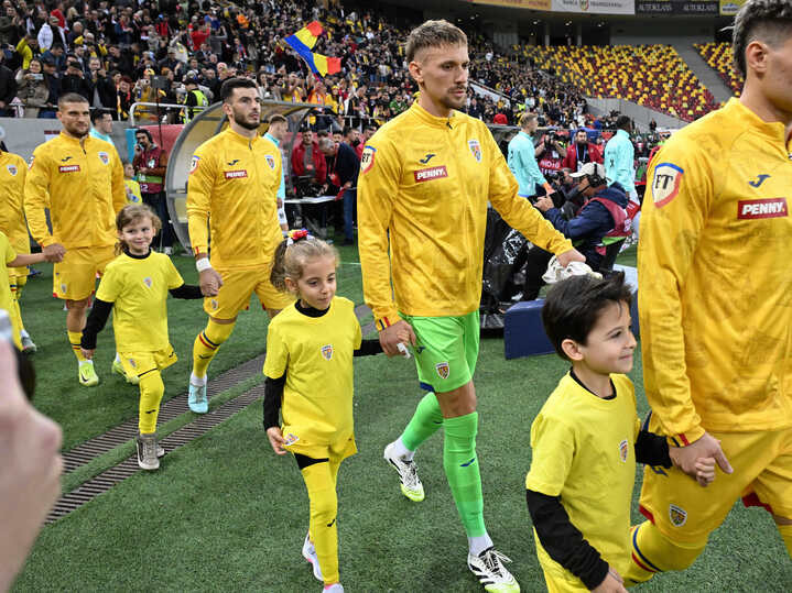 Descriere: Fotbalistii romani Daniel Birligea, Mihai Popescu si Ionut Radu la startul meciului de fotbal dintre Romania si Austria, din cadrul Preliminariilor Campionatului Mondial 2026, desfasurat pe Arena Nationala din Bucuresti, duminica 12 octombrie 2025. © FOTO:Razvan Pasarica/SPORT PICTURES