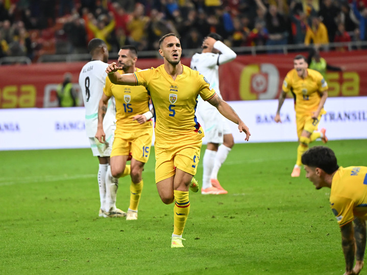 Descriere: Virgil Ghita se bucura dupa un gol marcat la meciul de fotbal dintre Romania si Austria, din cadrul Preliminariilor Campionatului Mondial 2026, desfasurat pe Arena Nationala din Bucuresti, duminica 12 octombrie 2025. © FOTO:Razvan Pasarica/SPORT PICTURES