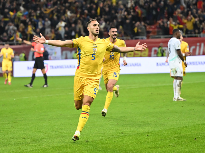 Descriere: Virgil Ghita se bucura dupa un gol marcat la meciul de fotbal dintre Romania si Austria, din cadrul Preliminariilor Campionatului Mondial 2026, desfasurat pe Arena Nationala din Bucuresti, duminica 12 octombrie 2025. © FOTO:Razvan Pasarica/SPORT PICTURES