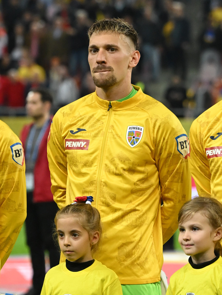 Descriere: Ionut Radu la intonarea imnului de stat inaintea meciului de fotbal dintre Romania si Austria, din cadrul Preliminariilor Campionatului Mondial 2026, desfasurat pe Arena Nationala din Bucuresti, duminica 12 octombrie 2025. © FOTO:Razvan Pasarica/SPORT PICTURES