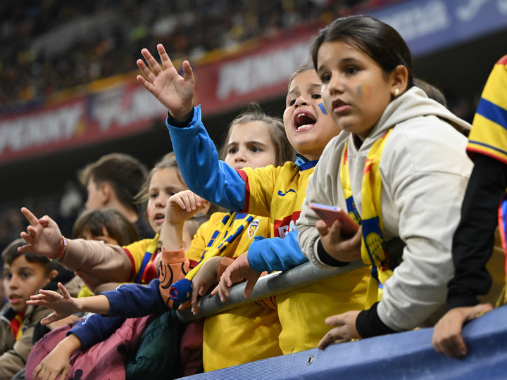 Descriere: Tinerii suporteri romani reactioneaza in peluza la meciul de fotbal dintre Romania si Austria, din cadrul Preliminariilor Campionatului Mondial 2026, desfasurat pe Arena Nationala din Bucuresti, duminica 12 octombrie 2025. © FOTO:Razvan Pasarica/SPORT PICTURES
