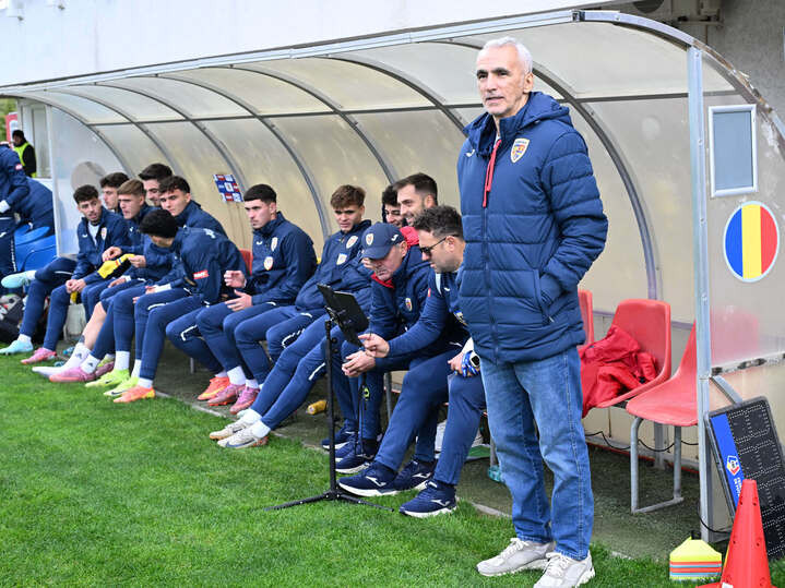 Descriere: Adrian Iencsi pe banca romaneasca in meciul de fotbal dintre Romania U20 si Cehia U20, contand pentru Elite League U20, desfasurat pe Stadionul central din cadrul Centrului National de Fotbal Buftea, luni 13 octombrie 2025. © FOTO:Razvan Pasarica/SPORT PICTURES