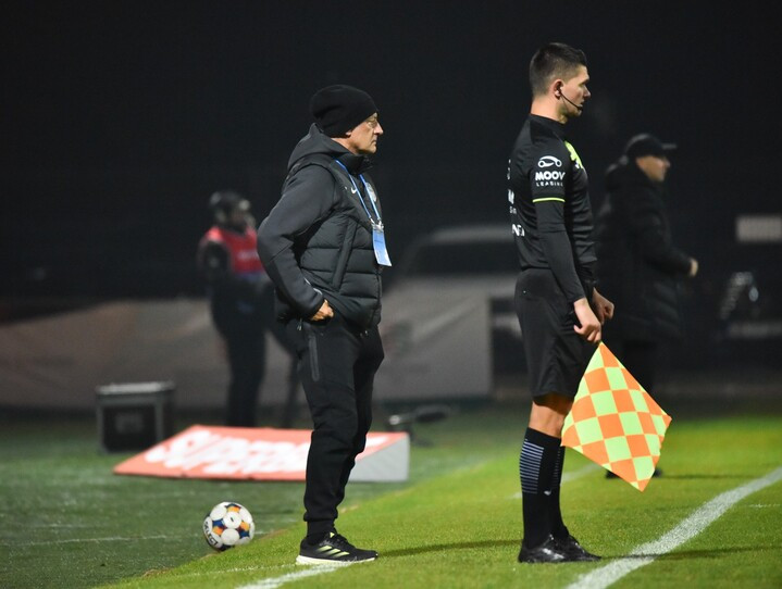 Descriere: Arbitrul asistent Alexandru Filip si Andrea Mandorlini in meciul de fotbal dintre FK Csikszereda Miercurea Ciuc si FC CFR 1907 Cluj, contand pentru Superliga Superbet, desfasurat pe Stadionul Municipal din Miercurea Ciuc, joi 16 octombrie 2025. © FOTO:Zoltan Pal/SPORT PICTURES