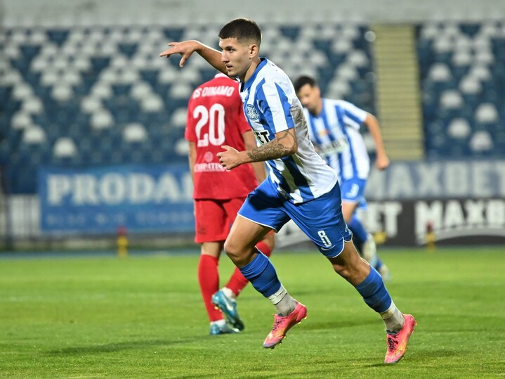 Descriere: Darius Ghimdovean dupi un gol marcat in meciul de fotbal dintre ACSM Politehnica Iasi si CS Dinamo Bucuresti, contand pentru Liga 2 Casa Pariurilor, desfasurat pe Stadionul Emil Alexandrescu din Iasi, vineri 17 octombrie 2025. © FOTO: Tudy/SPORT PICTURES