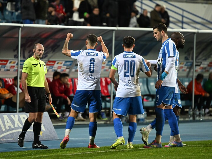 Descriere: Fotbalistii ieseni se bucura dupa un gol marcat in meciul de fotbal dintre ACSM Politehnica Iasi si CS Dinamo Bucuresti, contand pentru Liga 2 Casa Pariurilor, desfasurat pe Stadionul Emil Alexandrescu din Iasi, vineri 17 octombrie 2025. © FOTO: Tudy/SPORT PICTURES