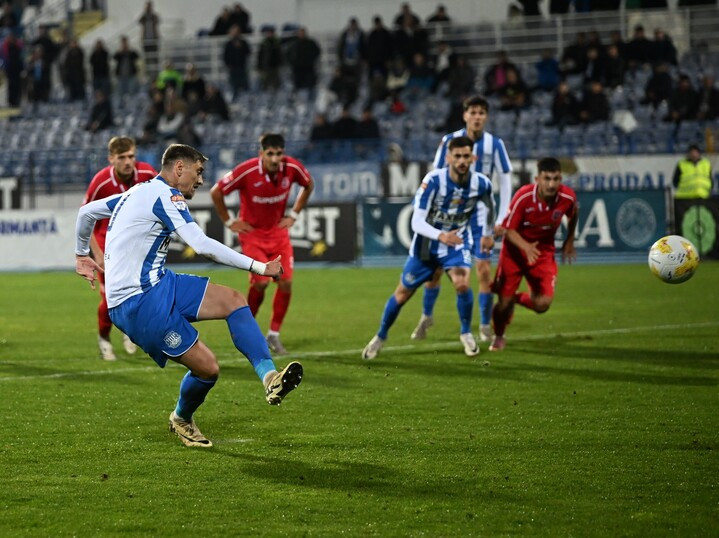 Descriere: Alin Seroni executa o lovitura de la 11m in meciul de fotbal dintre ACSM Politehnica Iasi si CS Dinamo Bucuresti, contand pentru Liga 2 Casa Pariurilor, desfasurat pe Stadionul Emil Alexandrescu din Iasi, vineri 17 octombrie 2025. © FOTO: Tudy/SPORT PICTURES