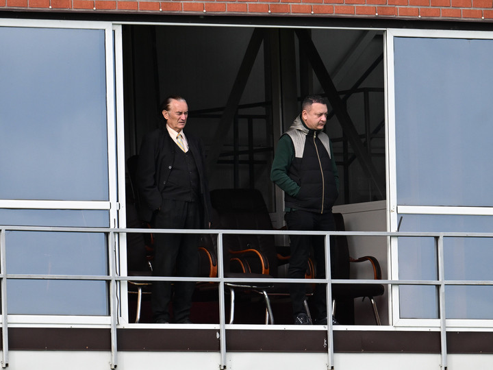 Descriere: Miron Cozma si Robert Gherghe urmaresc din tribuna meciul de fotbal dintre FC Voluntari si ASA Targu Mures, contand pentru Liga a-2-a Casa Pariurilor, desfasurat pe Stadionul Anghel Iordanescu din Voluntari, sambata 18 octombrie 2025. © FOTO:Razvan Pasarica/SPORT PICTURES