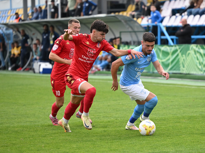 Descriere: Rares Bogdan Trif si Alberto Constantin Calin in meciul de fotbal dintre FC Voluntari si ASA Targu Mures, contand pentru Liga a-2-a Casa Pariurilor, desfasurat pe Stadionul Anghel Iordanescu din Voluntari, sambata 18 octombrie 2025. © FOTO:Razvan Pasarica/SPORT PICTURES