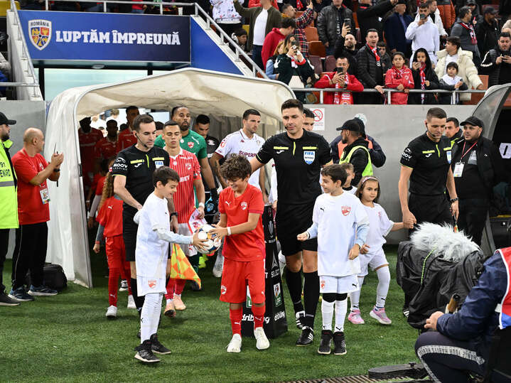 Descriere: Brigada de arbitri formată din Mihai Marius Marica, Marian Barbu si George Florin Neacsu la startul meciului de fotbal dintre Dinamo Bucuresti si Rapid Bucuresti, din cadrul Superligii Superbet, desfasurat pe Arena Nationala din Bucuresti, duminica 19 octombrie 2025. © FOTO:Razvan Pasarica/SPORT PICTURES