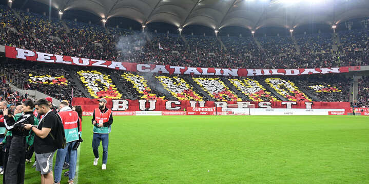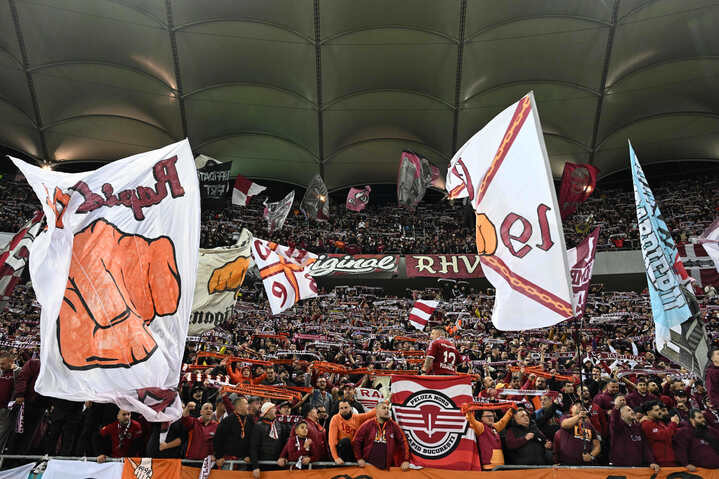 Descriere: Galeria rapidista la meciul de fotbal dintre Dinamo Bucuresti si Rapid Bucuresti, din cadrul Superligii Superbet, desfasurat pe Arena Nationala din Bucuresti, duminica 19 octombrie 2025. © FOTO:Razvan Pasarica/SPORT PICTURES