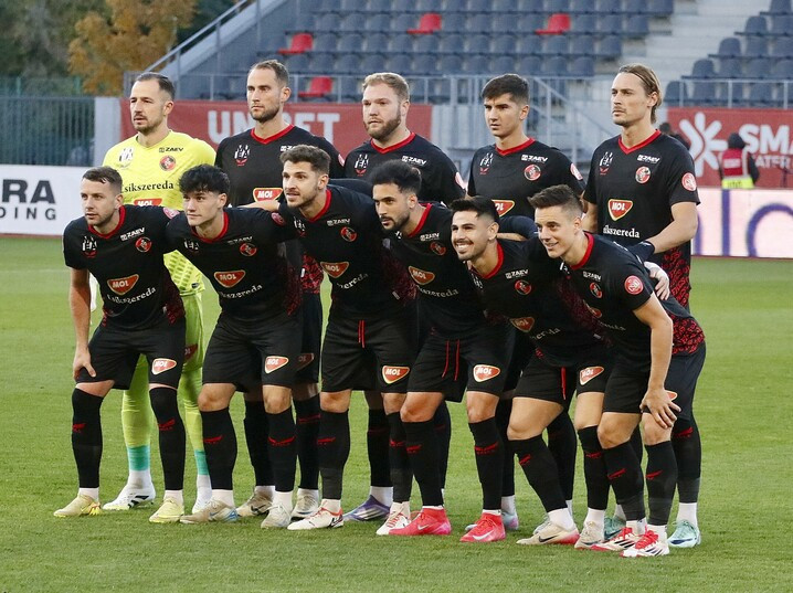 Descriere: Fotbalistii harghiteni la o fotografie de grup realizata inaintea meciului de fotbal dintre AFC Hermannstadt Sibiu si FK Csikszereda Miercurea Ciuc, contand pentru Superliga Superbet, desfasurat pe Stadionul Municipal din Sibiu, luni 20 octombrie 2025. © FOTO:Valentin Macrea/SPORT PICTURES