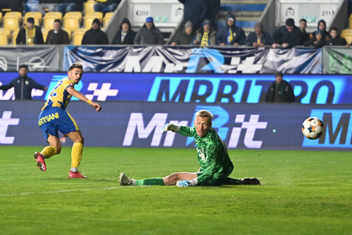 Descriere: Denis Razvan Radu marchează un gol în poarta lui Otto Hindrich in meciul dintre Petrolul Ploiesti si CFR Cluj, contand pentru Superliga Superbet, desfasurat pe Stadionul Ilie Oana din Ploiesti, luni 20 octombrie 2025. © FOTO:Razvan Pasarica/SPORT PICTURES