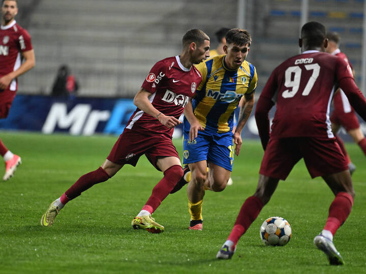 Descriere: Andres Emil Sfait si Robert Ionut Salceanu in meciul dintre Petrolul Ploiesti si CFR Cluj, contand pentru Superliga Superbet, desfasurat pe Stadionul Ilie Oana din Ploiesti, luni 20 octombrie 2025. © FOTO:Razvan Pasarica/SPORT PICTURES