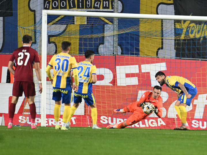 Descriere: Andrei Raul Balbarau si Paul Papp in meciul dintre Petrolul Ploiesti si CFR Cluj, contand pentru Superliga Superbet, desfasurat pe Stadionul Ilie Oana din Ploiesti, luni 20 octombrie 2025. © FOTO:Razvan Pasarica/SPORT PICTURES