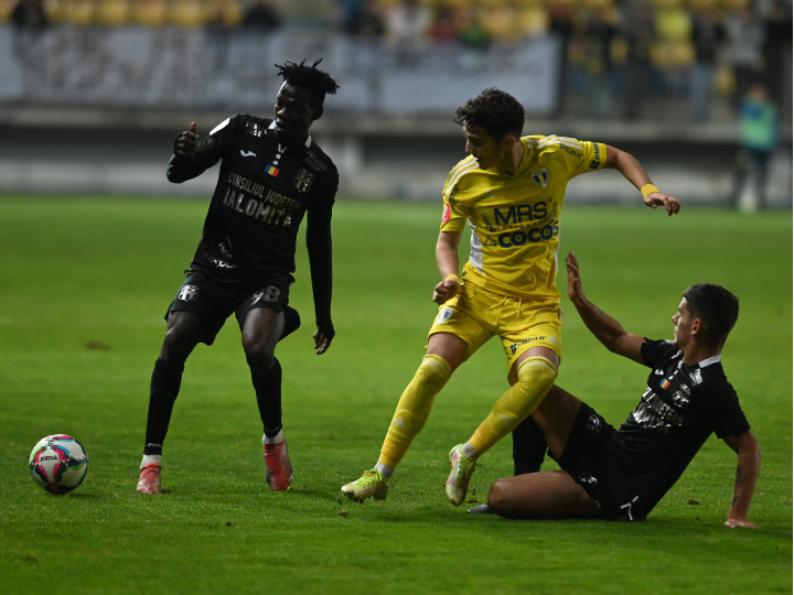 Descriere: Christ Nkama Afalna si Mario George Bratu in meciul de fotbal dintre Unirea Slobozia si Petrolul Ploiesti, contand pentru Cupa Romaniei, desfasurat pe Stadionul Ilie Oana din Ploiesti, marti 8 noiembrie 2022. © FOTO:Razvan Pasarica/SPORT PICTURES