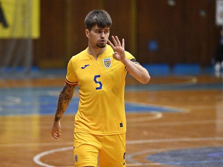 Descriere: Sergiu David Gavrila reactioneaza in meciul de futsal dintre Romania si Ucraina, contand pentru Preliminariile Euro 2026, desfasurat in Sala Sporturilor din Targu Mures, marti 17 decembrie 2024. © FOTO:Razvan Pasarica/SPORT PICTURES