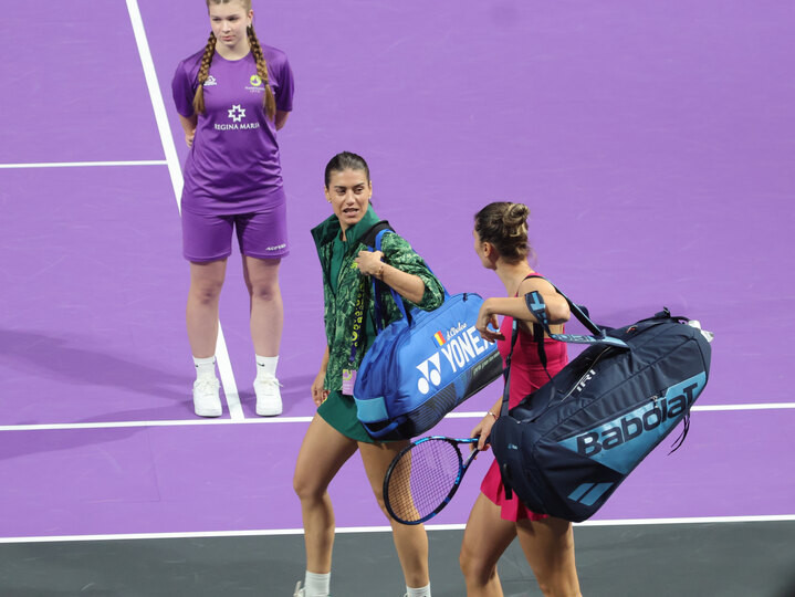 Descriere: Perechea Irina Camelia Begu/Sorana Cirstea la startul meciului de tenis dintre Jaqueline Cristian/Angelica Moratelli (Romania/Italia) si Irina Camelia Begu/Sorana Cirstea (Romania/Romania) din cadrul turneului Transilvania Open 2025 WTA 250, desfasurat la BT Arena Cluj din Cluj-Napoca, vineri 7 februarie 2025. © FOTO: Marian Valentin Burlacu/SPORT PICTURES