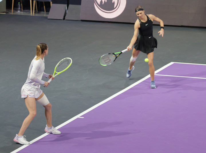 Descriere: Katarzyna Piter si Aliaksandra Sasnovich in meciul de tenis dintre Jaqueline Cristian/Angelica Moratelli (Romania/Italia) si Katarzyna Piter/Aliaksandra Sasnovich (Polonia/Belarus) din cadrul turneului Transilvania Open 2025 WTA 250, desfasurat la BT Arena Cluj din Cluj-Napoca, sambata 8 februarie 2025. © FOTO: Marian Valentin Burlacu/SPORT PICTURES