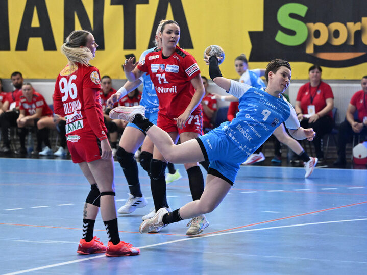 Descriere: Charlotte Cholevova, Alicia Maria Gogirla si Alina Grijseels in meciul de handbal feminin dintre CSM Bucuresti si SCM Ramnicu Valcea, contand pentru Liga Florilor, desfasurat in Sala Apollo din Bucuresti, duminica 4 mai 2025. © FOTO:Razvan Pasarica/SPORT PICTURES