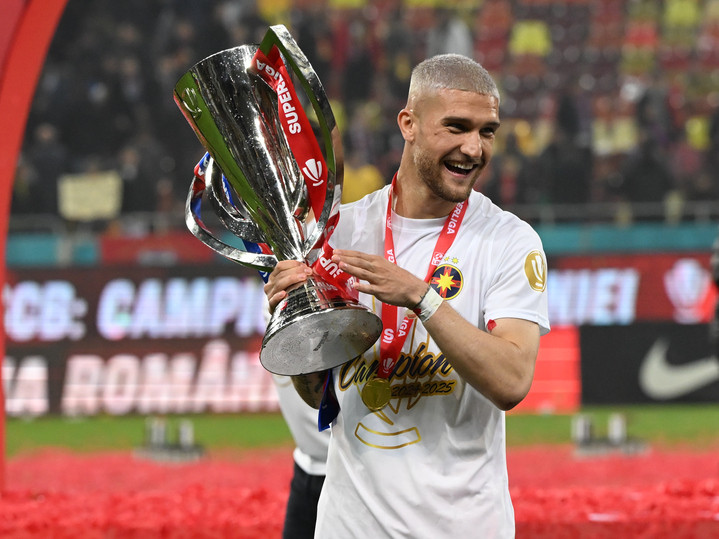 Descriere: George Daniel Bîrligea celebreaza castigarea Superligii Superbet in urma meciului dintre FCSB si Universitatea Craiova, din cadrul Play off-ului competitiei, desfasurat pe Arena Nationala din Bucuresti, sambata 17 mai 2025. © FOTO:Razvan Pasarica/SPORT PICTURES
