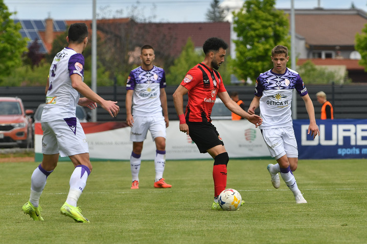Descriere: Soufiane Jebari si Gabriel Gheorghe in meciul de fotbal dintre AFK Csikszereda Miercurea Ciuc si ACSC FC Arges, contand pentru Liga 2 Casa Pariurilor Play-Off Promovare, desfasurat pe Stadionul Municipal din Miercurea Ciuc, duminica 18 mai 2025. © FOTO: Bogdan Balas/SPORT PICTURES