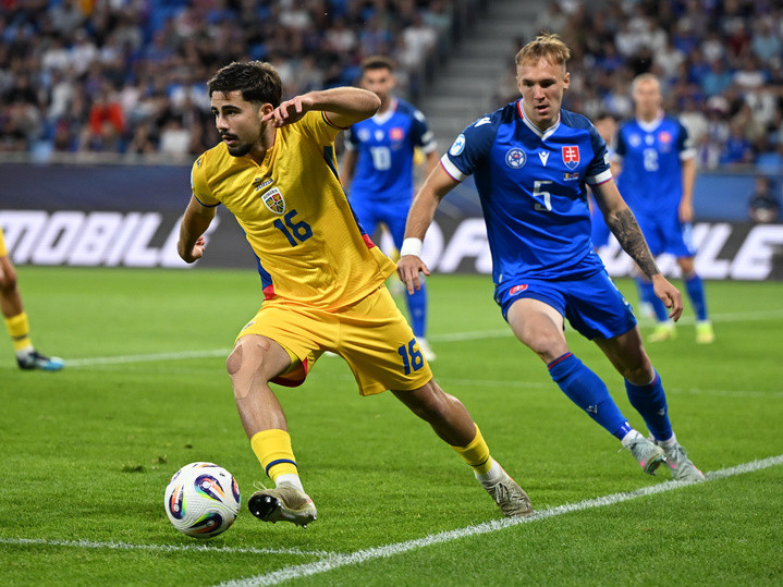 Descriere: Tony Strata si Dominik Javorček in meciul de fotbal dintre Romania U21 si Slovacia U21, din cadrul UEFA EURO U21 din Slovacia, desfasurat pe Stadionul National de fotbal din Bratislava, marti 17 iunie 2025. © FOTO:Razvan Pasarica/SPORT PICTURES
