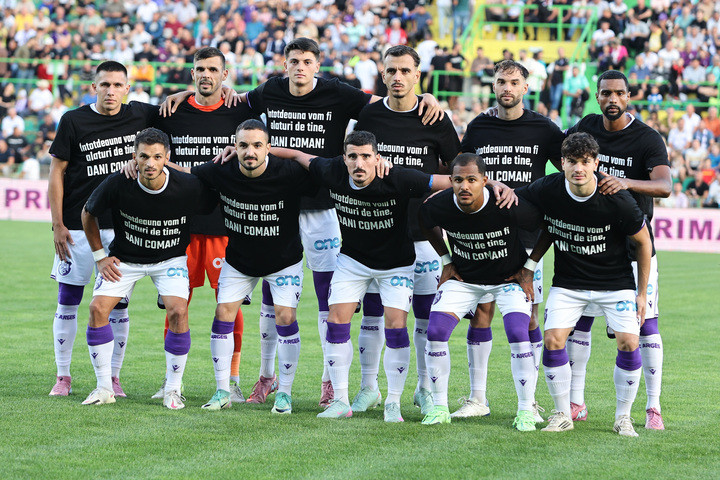Descriere: Fotbalistii argeseni la o fotografie de grup realizata inaintea meciului de fotbal dintre FC Arges si FC Universitatea Cluj, contand pentru Superliga Superbet, desfasurat pe Stadionul Orasenesc din Mioveni, sambata 19 septembrie 2025. © FOTO:Gheorghe Fluster/SPORT PICTURES