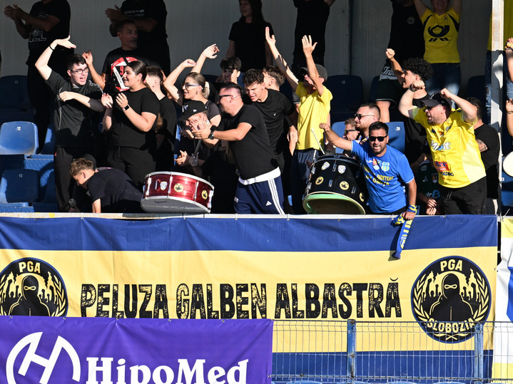 Descriere: Galeria ialomiteana se bucura la golul favoritilor reusit in meciul dintre Unirea Slobozia si Petrolul Ploiesti, contand pentru Superliga Superbet, desfasurat pe Clinceni Arena din Clinceni, duminica 21 septembrie 2025. © FOTO:Razvan Pasarica/SPORT PICTURES