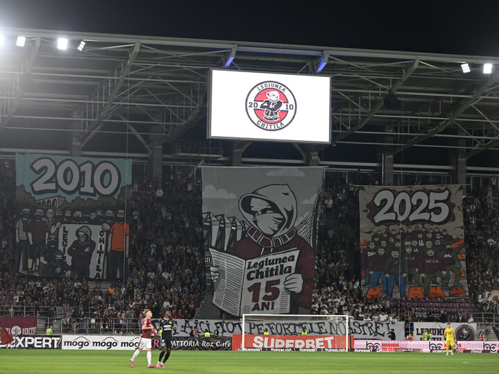 Descriere: Coregrafie a Legiunii Chitila prezentata in peluza rapidista la meciul de fotbal dintre Rapid Bucuresti si FC Hermannstadt, din cadrul Superligii Superbet, desfasurat pe Superbet Arena-Giulesti din Bucuresti, duminica 21 septembrie 2025. © FOTO:Razvan Pasarica/SPORT PICTURES