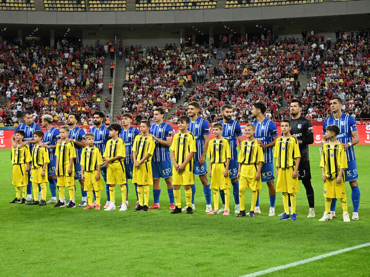 Descriere: Fotbalistii constanteni la startul meciului de fotbal dintre Dinamo Bucuresti si Farul Constanta, din cadrul Superligii Superbet, desfasurat pe Arena Nationala din Bucuresti, luni 22 septembrie 2025. © FOTO:Razvan Pasarica/SPORT PICTURES