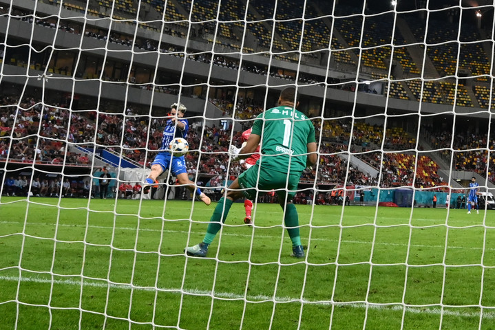 Descriere: Diogo Sa Ramalho marchează un gol în poarta lui Devis Rogers Epassy Mboka de langa Mamoudou Karamoko in meciul de fotbal dintre Dinamo Bucuresti si Farul Constanta, din cadrul Superligii Superbet, desfasurat pe Arena Nationala din Bucuresti, luni 22 septembrie 2025. © FOTO:Razvan Pasarica/SPORT PICTURES