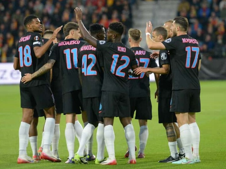 Descriere: Fotbalistii ros-albastrii se bucura dupa un gol marcat deDavid Raul Miculescu in meciul de fotbal dintre Go Ahead Eagles si FCSB, contand pentru UEFA Europa League, desfasurat la Stadion De Adelaarshorst din Deventer, joi 25 septembrie 2025. © FOTO:Alexandra Cristina Grigorescu/SPORT PICTURES
