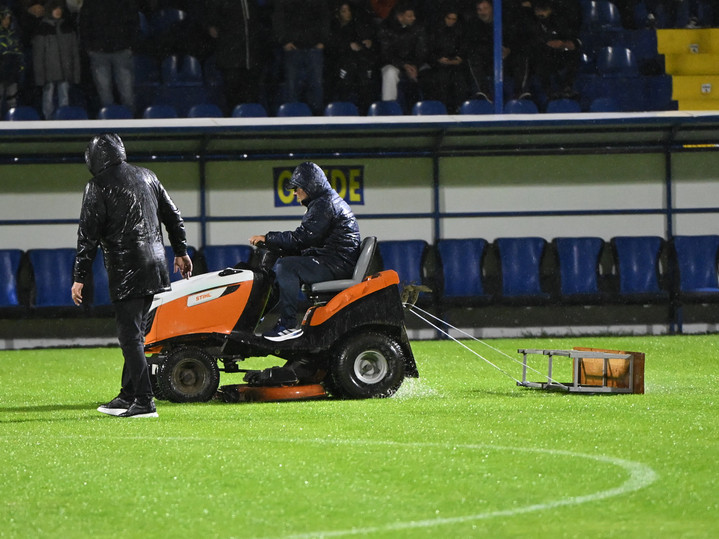 Descriere: Banca legata de un tractoras de tuns iarba in vederea imprastierii apei de pe gazon la meciul dintre Unirea Slobozia si Dinamo Bucuresti, contand pentru Superliga Superbet, desfasurat pe Clinceni Arena din Clinceni, vineri 3 octombrie 2025. © FOTO:Razvan Pasarica/SPORT PICTURES