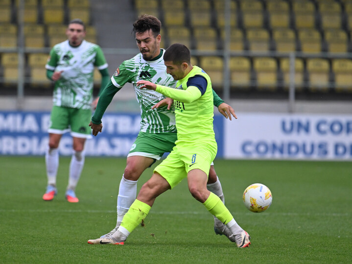 Descriere: Mihai Neicutescu si Darius Dacian Ghindovean in meciul de fotbal dintre Concordia Chiajna si Politehnica Iasi, contand pentru Liga a-2-a Casa Pariurilor, desfasurat pe Stadionul comunal Concordia din Chiajna, sambata 4 octombrie 2025. © FOTO:Razvan Pasarica/SPORT PICTURES